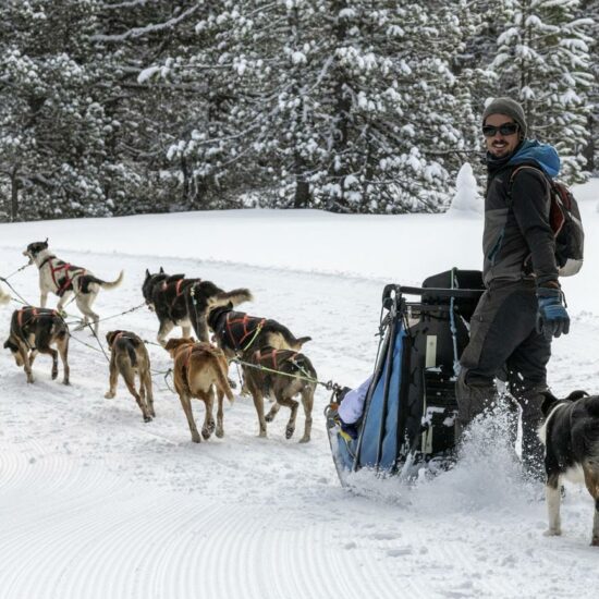 Confortablement installé dans un grand traîneau (ou un kart à chiens par manque de neige), laissez vous guider par un musher diplômé.
